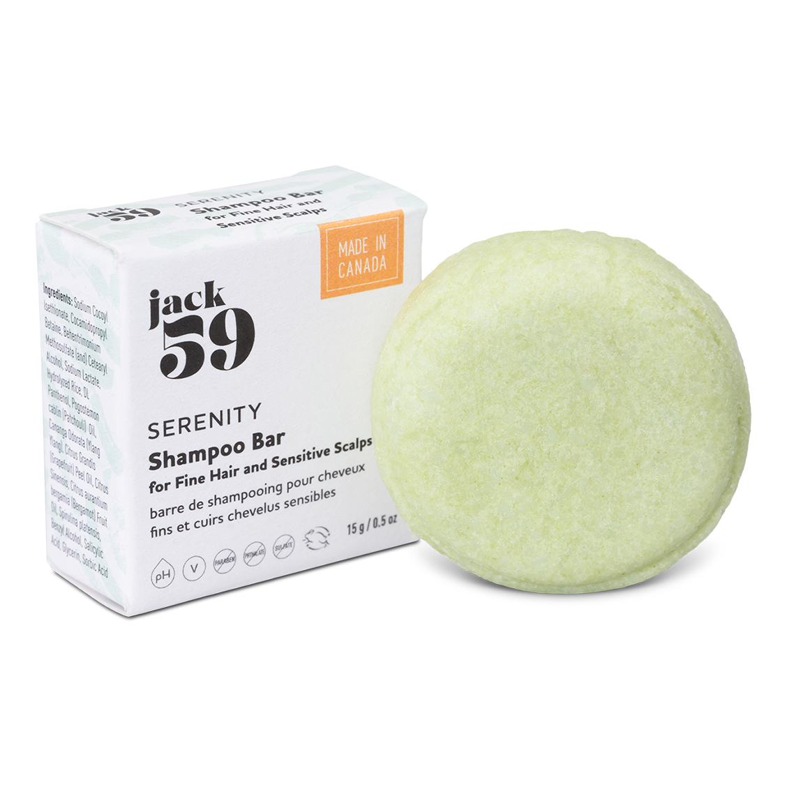 Soothe and cleanse with Jack59's Serenity Shampoo Travel Buddies Singles. Specially formulated as a gentle shampoo for itchy scalp, this gluten-free travel shampoo bar features calming botanicals and rice proteins to strengthen fine hair without irritation. Each mini shampoo bar provides the same sensitive-skin care as our full-size products. Perfect as a travel size shampoo for weekends away or as a refill for your Weekend Edition Travel Set.
